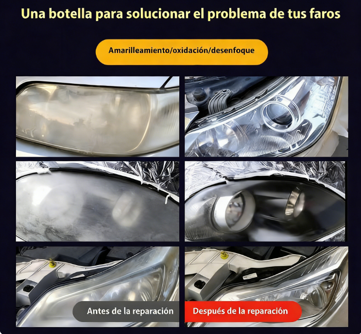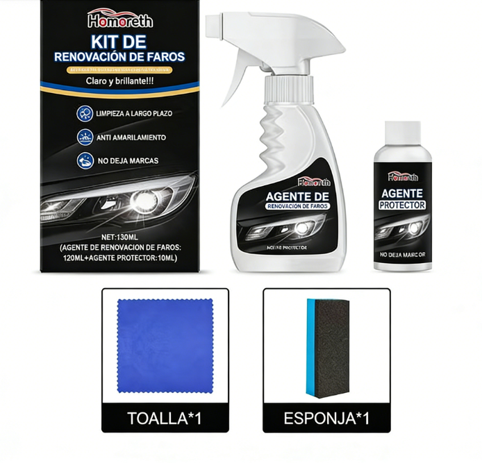 🚗 Nuestro Kit de Restauración de Faros devuelve el brillo en minutos. ¡Elimina la opacidad, desvanece los rasguños y agrega protección UV sin necesidad de herramientas. Fácil, rápido y te brinda más seguridad en la noche. ✨